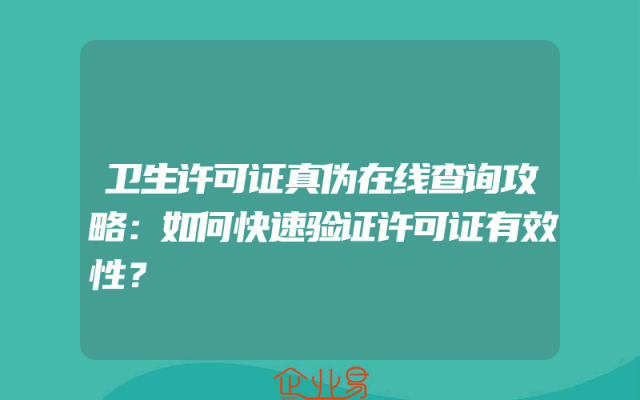 - 卫生许可证真伪在线查询攻略:如何快速验证许可证有效性?