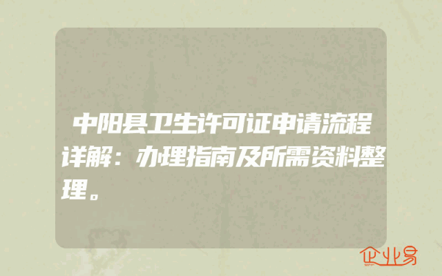 - 中阳县卫生许可证申请流程详解:办理指南及所需资料整理。