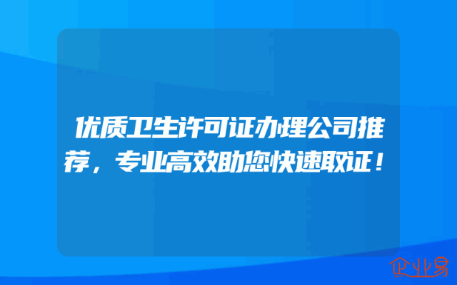 - 优质卫生许可证办理公司推荐,专业高效助您快速取证!