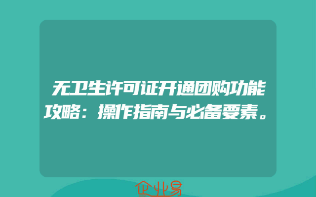 - 无卫生许可证开通团购功能攻略:操作指南与必备要素。