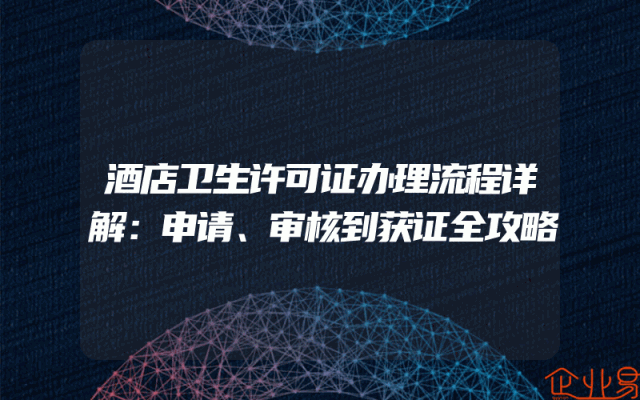 - 酒店卫生许可证办理流程详解:申请、审核到获证全攻略