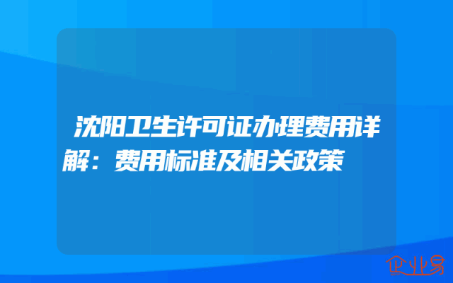 - 沈阳卫生许可证办理费用详解:费用标准及相关政策