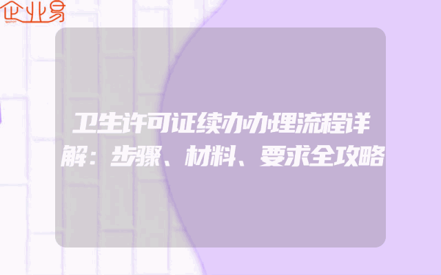 - 卫生许可证续办办理流程详解:步骤、材料、要求全攻略