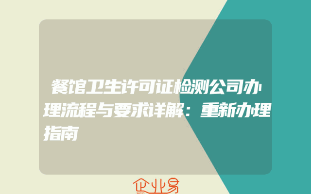 - 餐馆卫生许可证检测公司办理流程与要求详解:重新办理指南