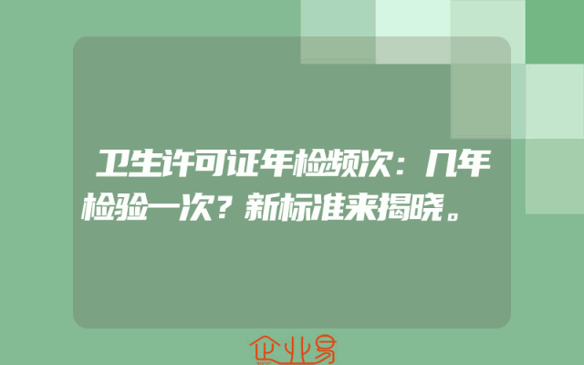 - 卫生许可证年检频次:几年检验一次?新标准来揭晓。