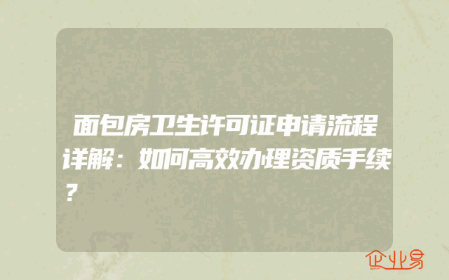 - 面包房卫生许可证申请流程详解:如何高效办理资质手续?