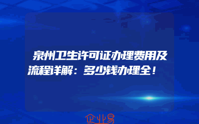 - 泉州卫生许可证办理费用及流程详解:多少钱办理全!