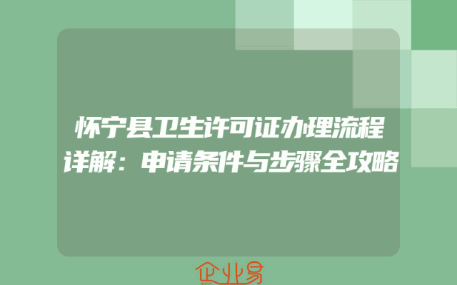 - 怀宁县卫生许可证办理流程详解:申请条件与步骤全攻略
