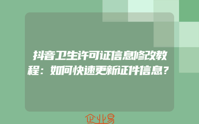 - 抖音卫生许可证信息修改教程:如何快速更新证件信息?