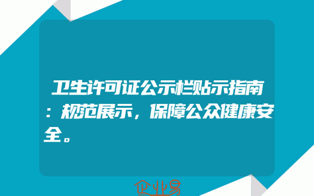 - 卫生许可证公示栏贴示指南:规范展示,保障公众健康安全。