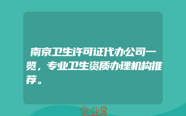 - 南京卫生许可证代办公司一览,专业卫生资质办理机构推荐。