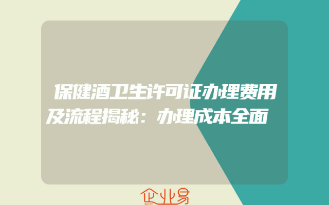 - 保健酒卫生许可证办理费用及流程揭秘:办理成本全面