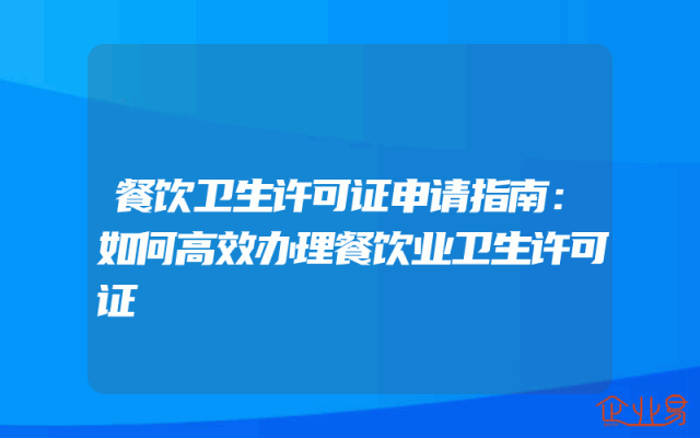 - 餐饮卫生许可证申请指南:如何高效办理餐饮业卫生许可证