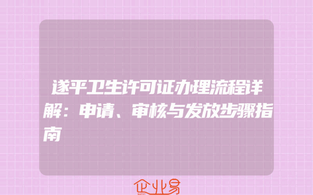 - 遂平卫生许可证办理流程详解:申请、审核与发放步骤指南