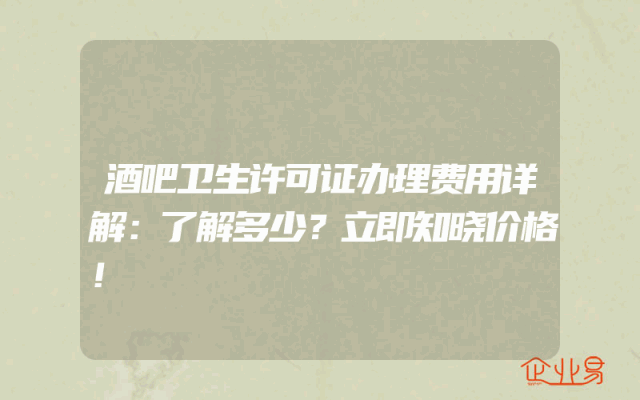 - 酒吧卫生许可证办理费用详解:了解多少?立即知晓价格!