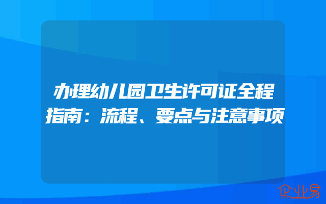- 办理幼儿园卫生许可证全程指南:流程、要点与注意事项