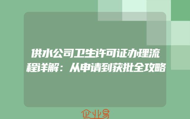 - 供水公司卫生许可证办理流程详解:从申请到获批全攻略