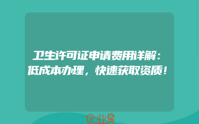 - 卫生许可证申请费用详解:低成本办理,快速获取资质!
