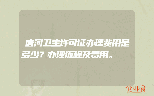 - 唐河卫生许可证办理费用是多少?办理流程及费用。