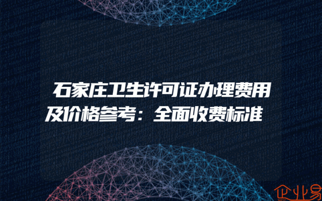 - 石家庄卫生许可证办理费用及价格参考:全面收费标准