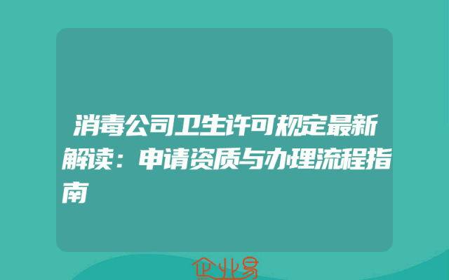 - 消毒公司卫生许可规定最新解读:申请资质与办理流程指南