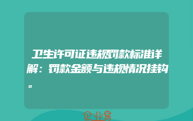 - 卫生许可证违规罚款标准详解:罚款金额与违规情况挂钩。