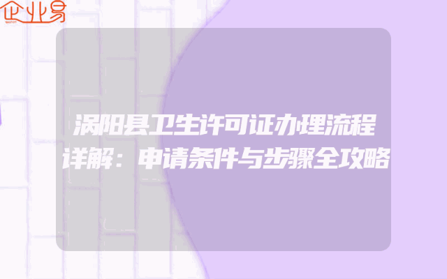 - 涡阳县卫生许可证办理流程详解:申请条件与步骤全攻略