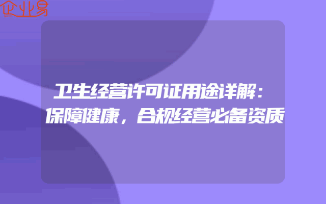 - 卫生经营许可证用途详解:保障健康,合规经营必备资质