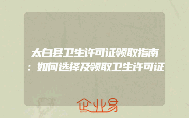 - 太白县卫生许可证领取指南:如何选择及领取卫生许可证
