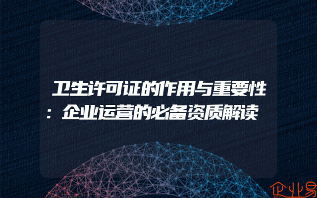 - 卫生许可证的作用与重要性:企业运营的必备资质解读