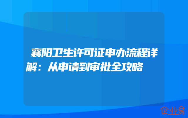 - 襄阳卫生许可证申办流程详解:从申请到审批全攻略