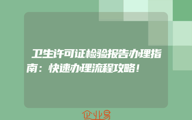 - 卫生许可证检验报告办理指南:快速办理流程攻略!