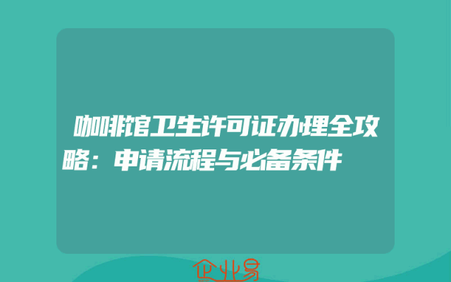 - 咖啡馆卫生许可证办理全攻略:申请流程与必备条件