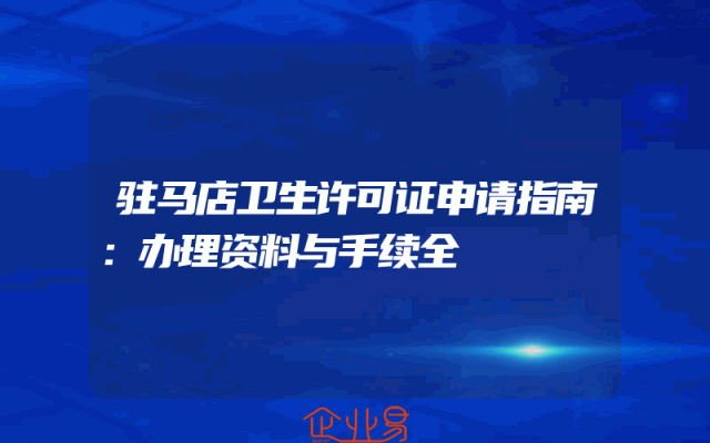 - 驻马店卫生许可证申请指南:办理资料与手续全
