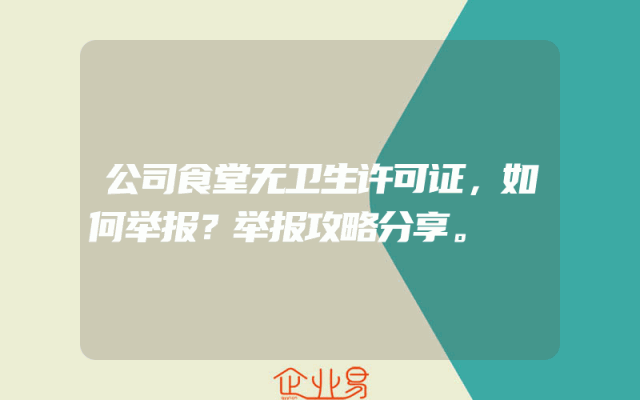 - 公司食堂无卫生许可证,如何举报?举报攻略分享。