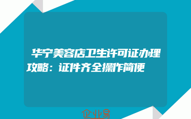 - 华宁美容店卫生许可证办理攻略:证件齐全操作简便