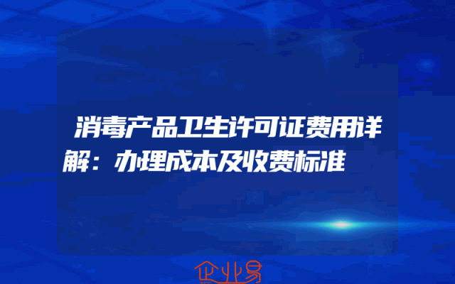 - 消毒产品卫生许可证费用详解:办理成本及收费标准