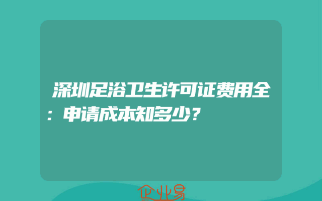 - 深圳足浴卫生许可证费用全:申请成本知多少?