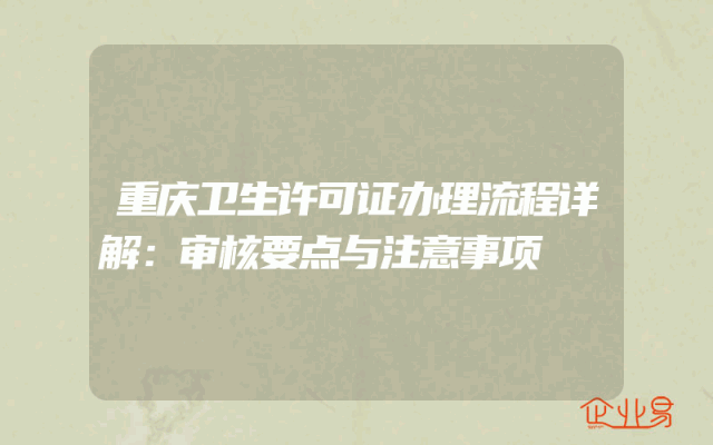 - 重庆卫生许可证办理流程详解:审核要点与注意事项