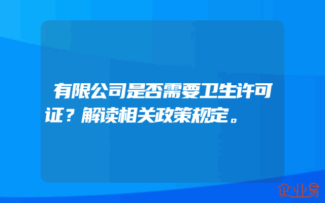 - 有限公司是否需要卫生许可证?解读相关政策规定。