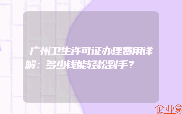 - 广州卫生许可证办理费用详解:多少钱能轻松到手?