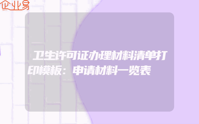 - 卫生许可证办理材料清单打印模板:申请材料一览表