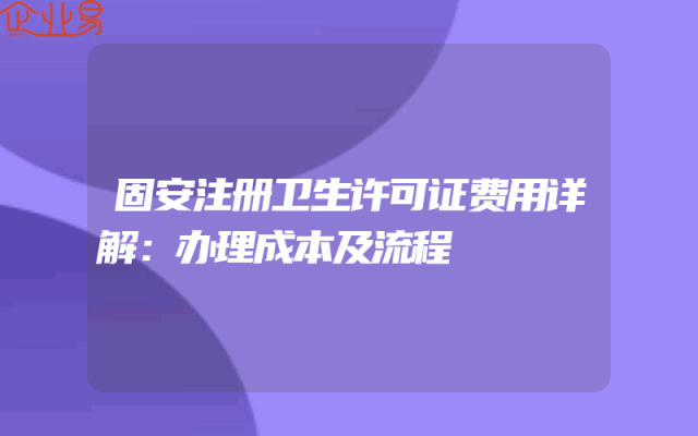 - 固安注册卫生许可证费用详解:办理成本及流程