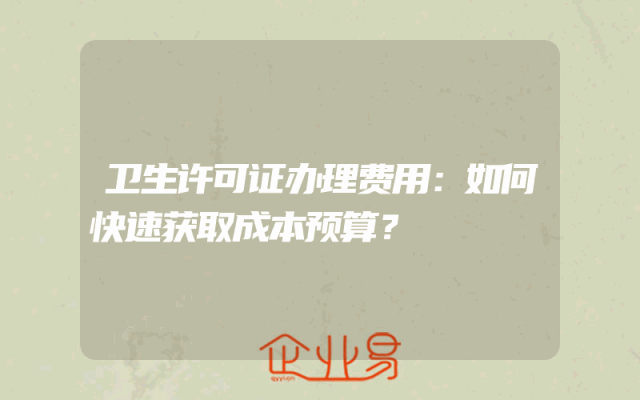 - 卫生许可证办理费用:如何快速获取成本预算?