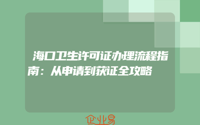 - 海口卫生许可证办理流程指南:从申请到获证全攻略