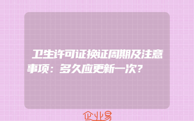- 卫生许可证换证周期及注意事项:多久应更新一次?