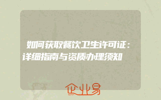- 如何获取餐饮卫生许可证:详细指南与资质办理须知
