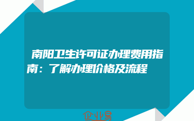 - 南阳卫生许可证办理费用指南:了解办理价格及流程