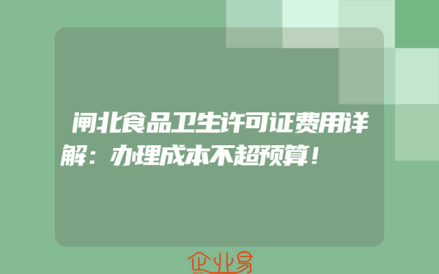 - 闸北食品卫生许可证费用详解:办理成本不超预算!