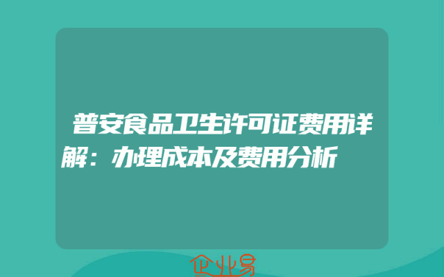- 普安食品卫生许可证费用详解:办理成本及费用分析